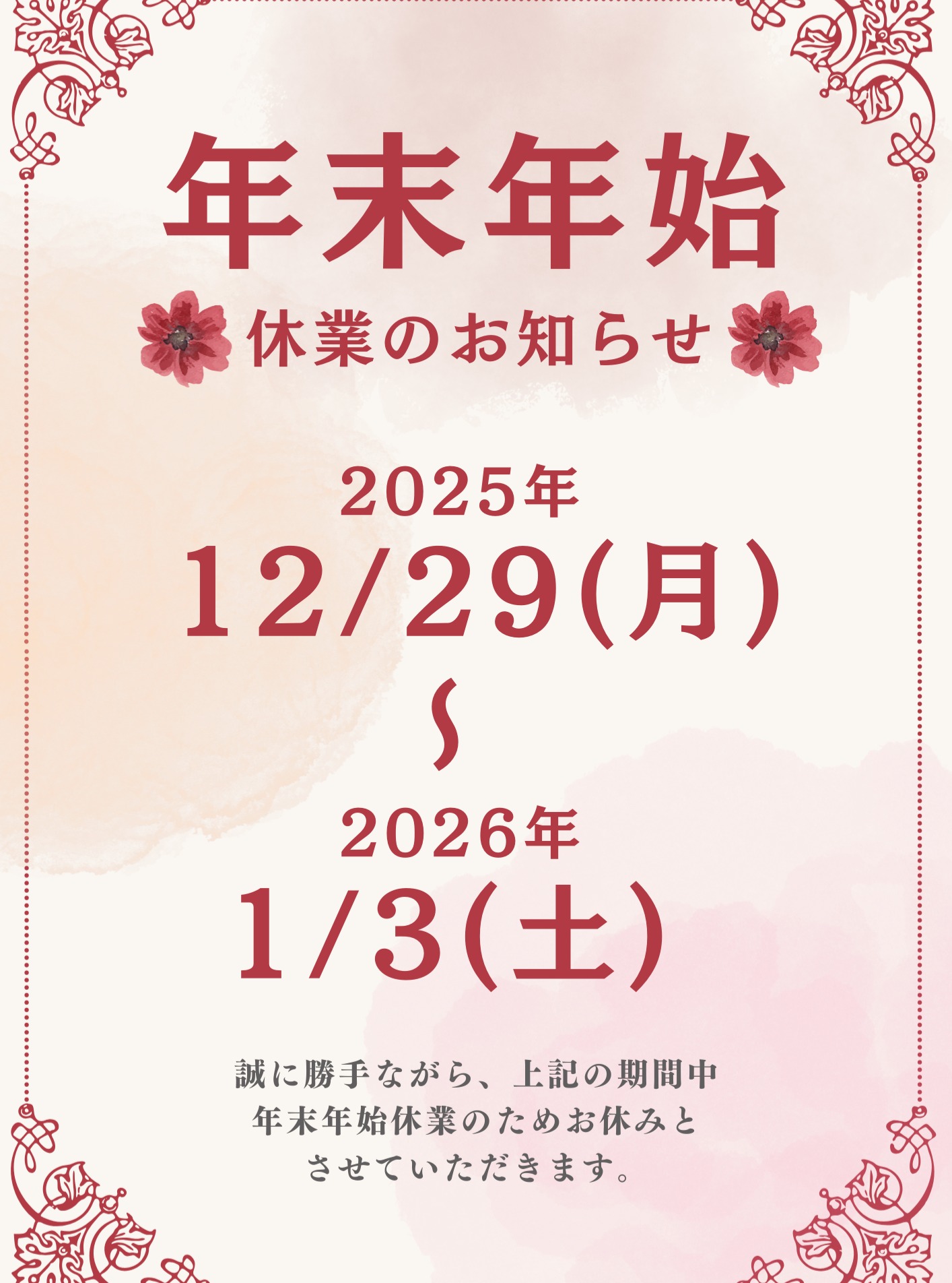 ■年始営業開始日 2025年1月5日(日)からは通常営業を致しております。